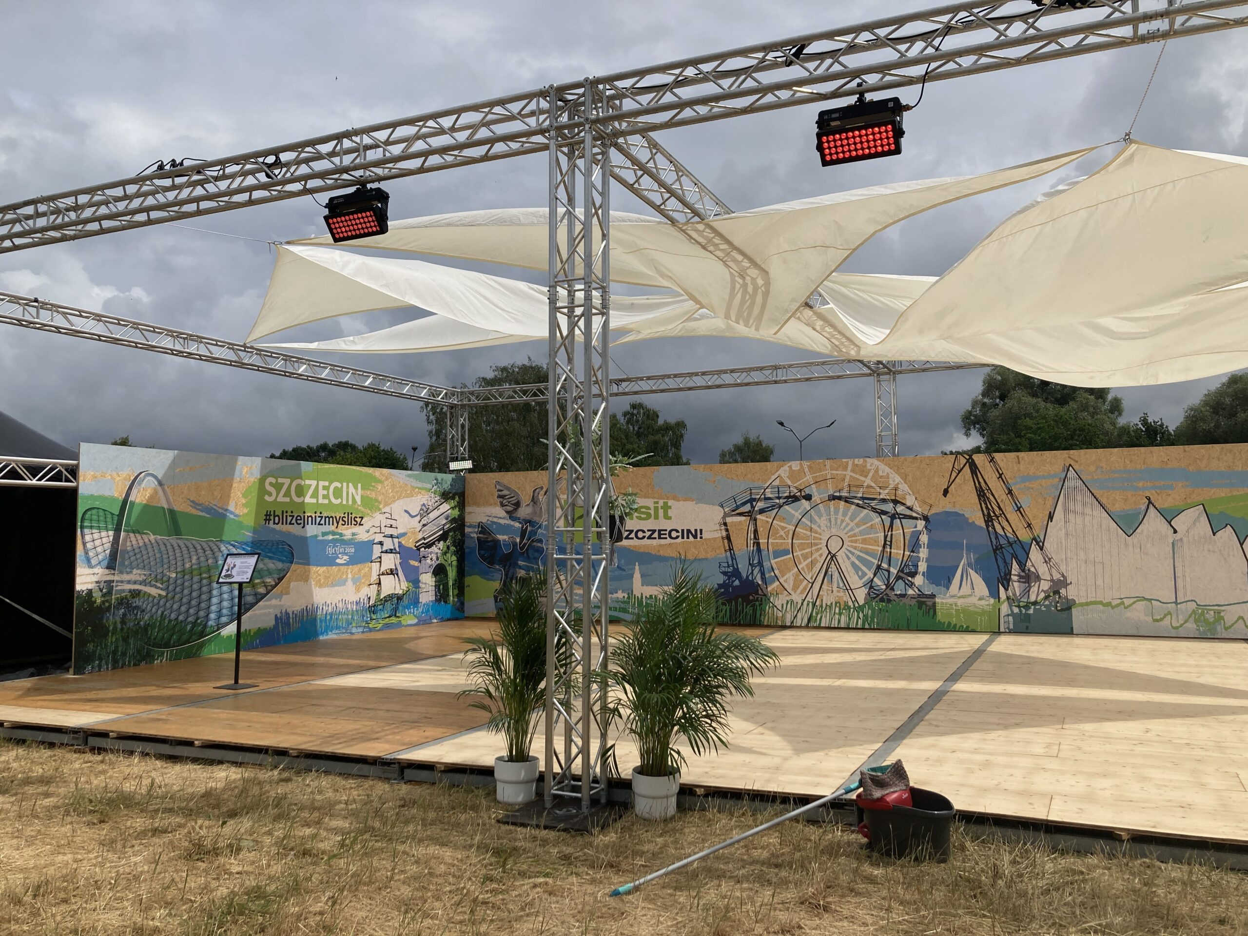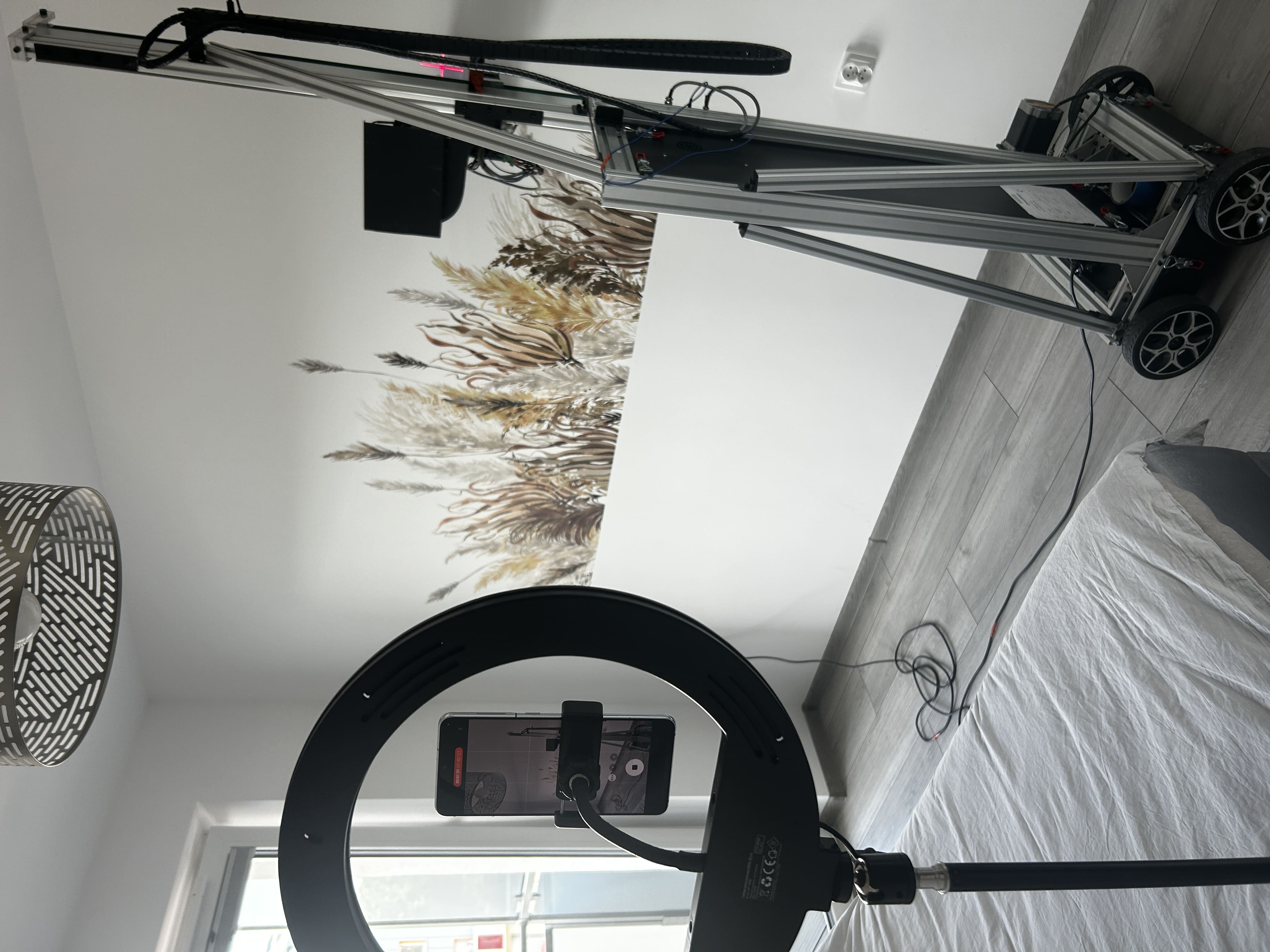 Proces drukowania na ścianie zaczynamy od wniesienia i ustawienia drukarki. Następnie poziomujemy szyny z gumowymi stopkami, dbając, by nie uszkodzić podłogi, i precyzyjnie ustawiamy obszar zadruku, co zajmuje około 30-45 minut. Kolejnym krokiem jest rozpoczęcie samego drukowania.